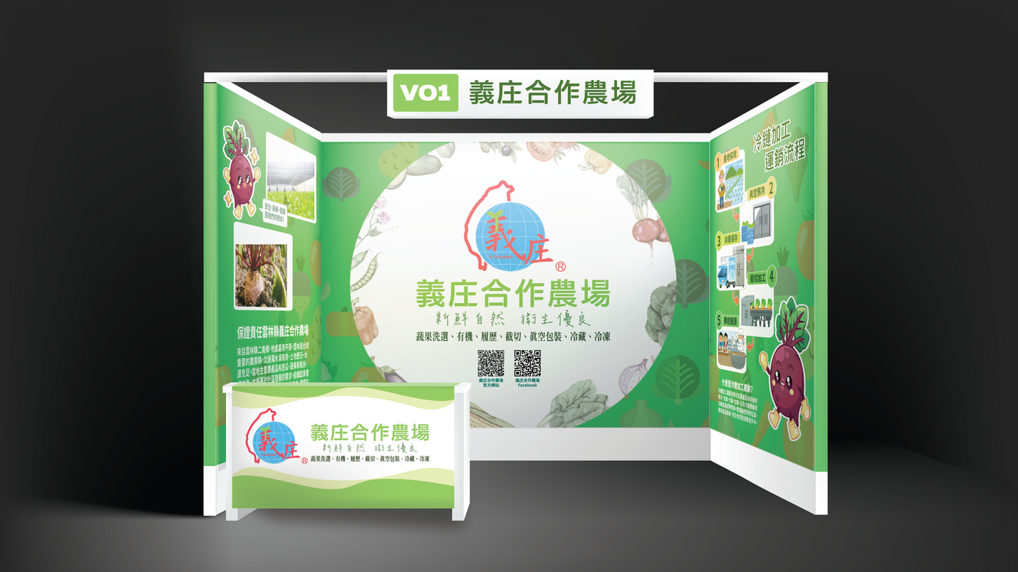 我們為義庄合作農場設計了出席活動所需的展布設計。以義庄的Logo及標準字為中心,再添加上易於解讀的圖示,吸引消費者的注意。在戶外的展攤我們以立牌的形式加上展布,讓主視覺顯得不那麽單調。展攤主要用來推銷產品,所以會將特色產品顯示于展布上作爲中心主視覺,而立牌則顯示產品的詳細資訊。豐富的顔色搭配可吸引消費者的目光,也可以更快速的讓消費者注意到產品。
